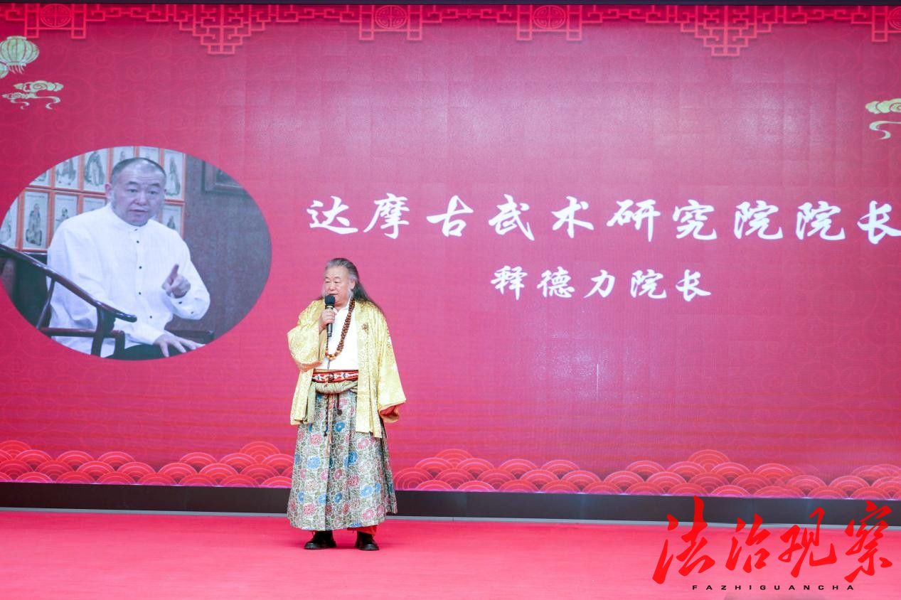 出席活动的中国著名武术家,达摩院古武经舍创始人释德力院长登台分享感悟,他从文化交融的视角出发,畅谈两仪文化与禅学思 想的相通之处,武道智慧与文化传承的深意,天人合一的哲思,亦在这一席话语中悄然流淌,其独到见解引发在场同仁的深刻共鸣。