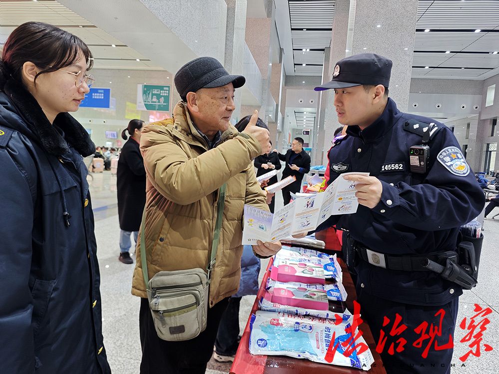 聚焦体验,服务举措暖人心。车站派出所聚焦旅客出行体验,精准实施了一系列贴心服务与管理举措。在站内,派出所民警与车站青年志愿者联合组成“青年突击队”。他们主动靠前,为旅客提供全方位的服务。在引导咨询方面,队员们熟悉车站的各个角落和列车时刻表,能够快速准确地为旅客指引方向、解答疑问;对于老弱病残孕等重点旅客,他们提供重点帮扶,从进站、候车到上车,全程陪伴,确保旅客顺利出行;在便捷改签服务上,车站增设了专门的改签窗口,并安排“青年突击队”队员协助旅客操作自助改签设备,同时为不熟悉流程的旅客提供详细的讲解和指导,大大缩短了改签时间;此外,队员们还积极开展法治宣传活动,通过发放宣传资料、现场讲解等方式,向旅客普及交通安全、防范诈骗等知识,提高旅客的安全意识。通过这些努力,购票、进站、候车各环节实现了高效衔接,旅客的出行更加顺畅。